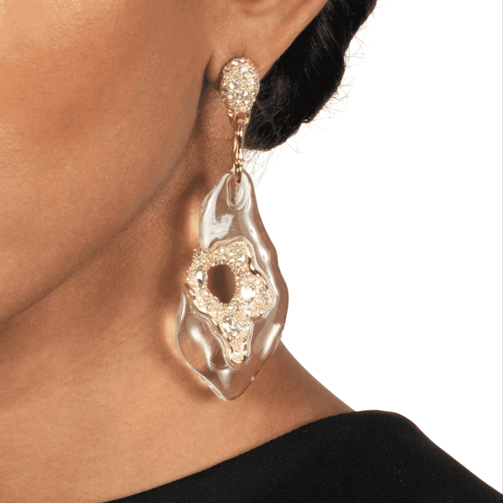 Hand-carved Lucite enhanced with pavé crystals brings a touch of radiance. Lightweight yet bold, these earrings highlight Alexis Bittar’s signature artistry. Shop now.