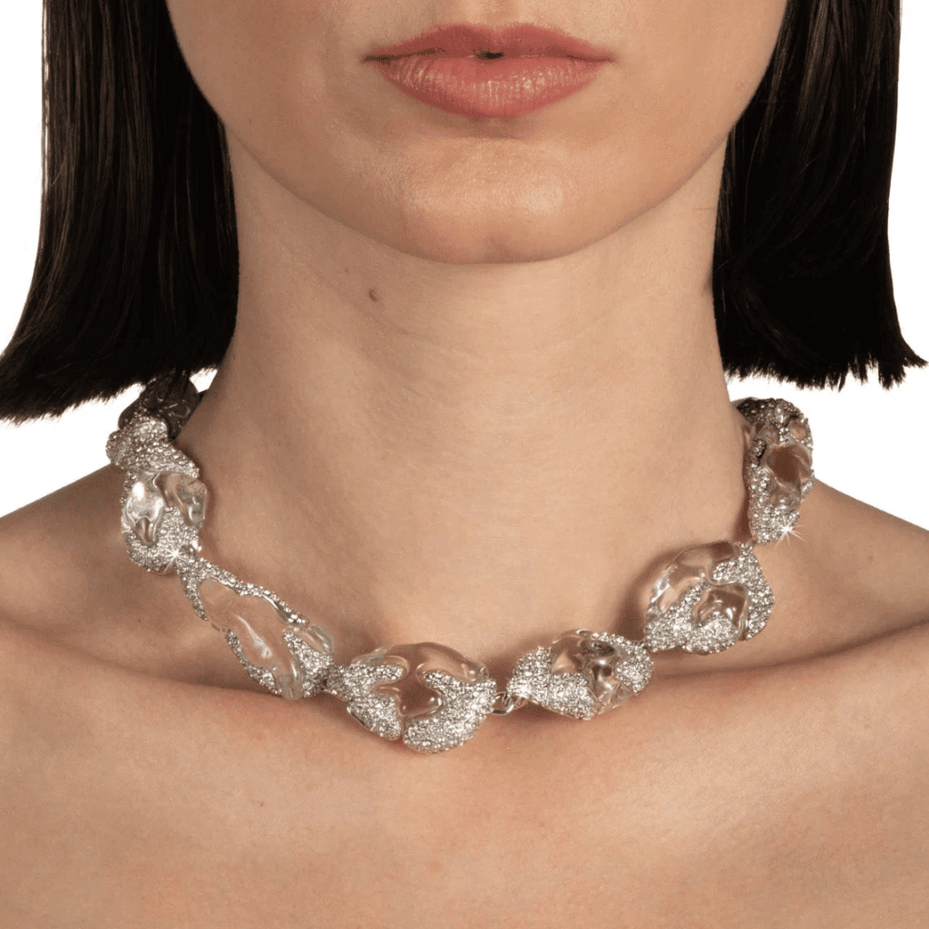 First, the brand is known for innovative materials like hand-carved Lucite paired with radiant crystals and precious metals. As a result, each piece feels contemporary yet timeless. In addition, meticulous detailing ensures heirloom quality without sacrificing comfort.