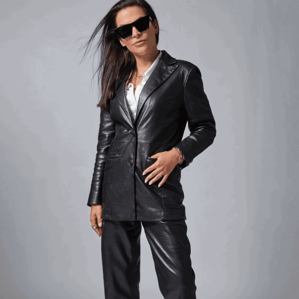 • Pair a recycled leather jacket with tailored trousers for a polished office look.