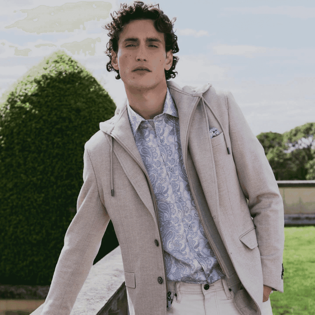 Robert Graham’s tailoring reflects the same creative spirit found in its shirts. Blazers and jackets are cut with clean lines while incorporating unexpected textures and linings. As a result, they offer structure without stiffness.