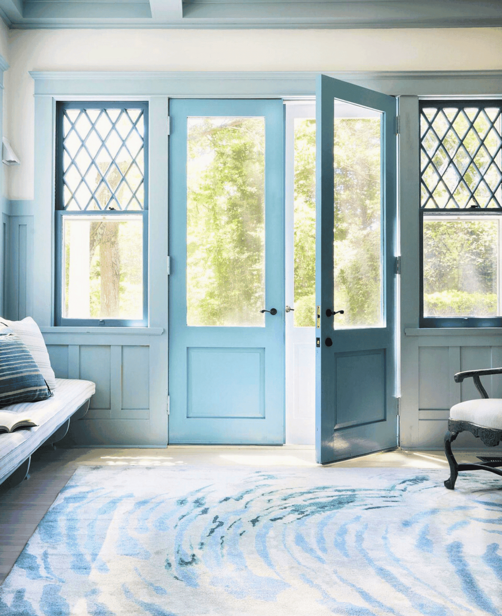 An area rug instantly defines the entryway, especially in open-concept homes where the foyer flows directly into living areas.