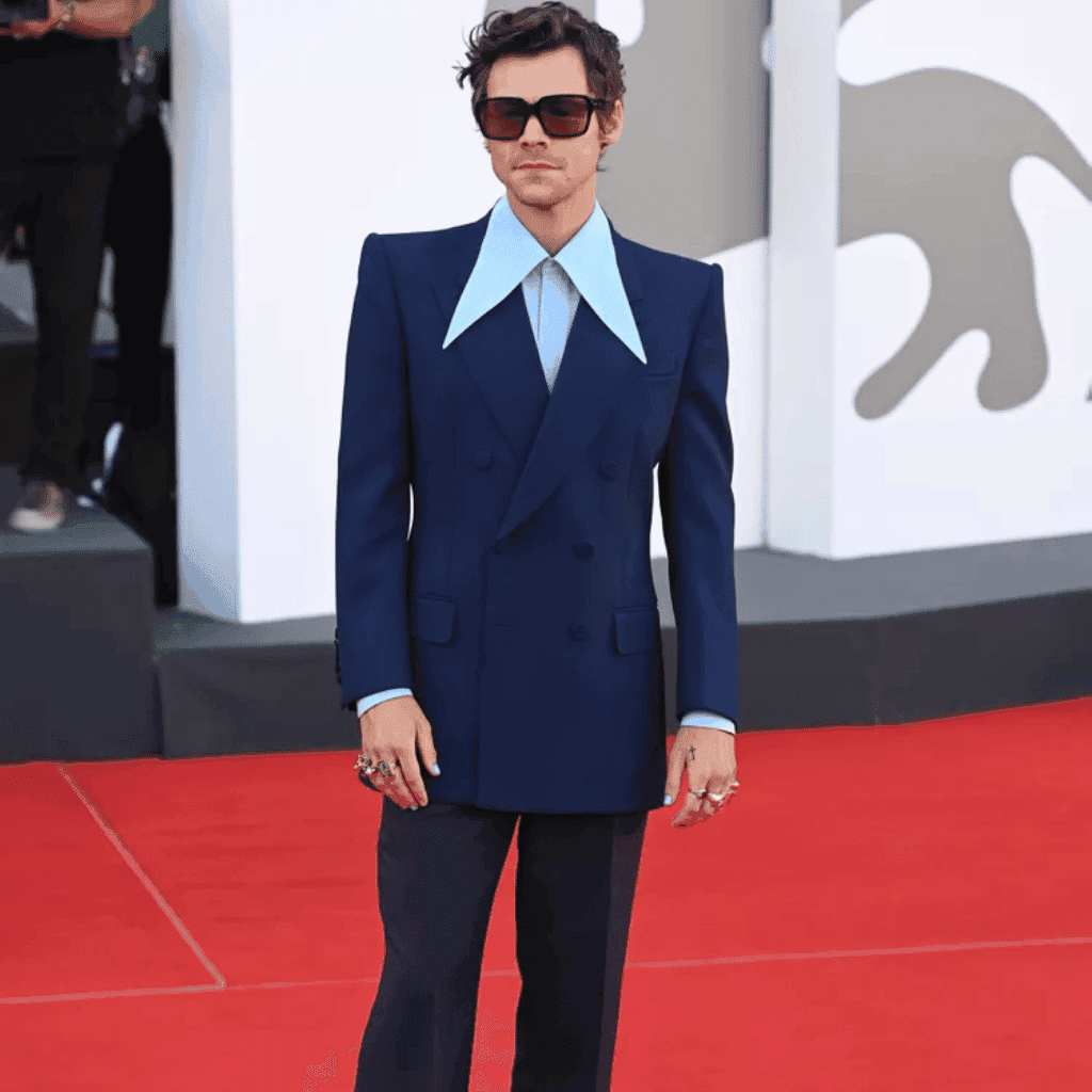 He has frequently worn designs from Gucci, developing a close creative relationship with the house. His appearances in tailored suits, embellished jackets, and lace-trimmed blouses helped redefine Gucci’s modern menswear narrative. Eventually, this relationship evolved into a formal collaboration, making him one of the first men to front a major luxury fashion campaign that challenged gender norms.