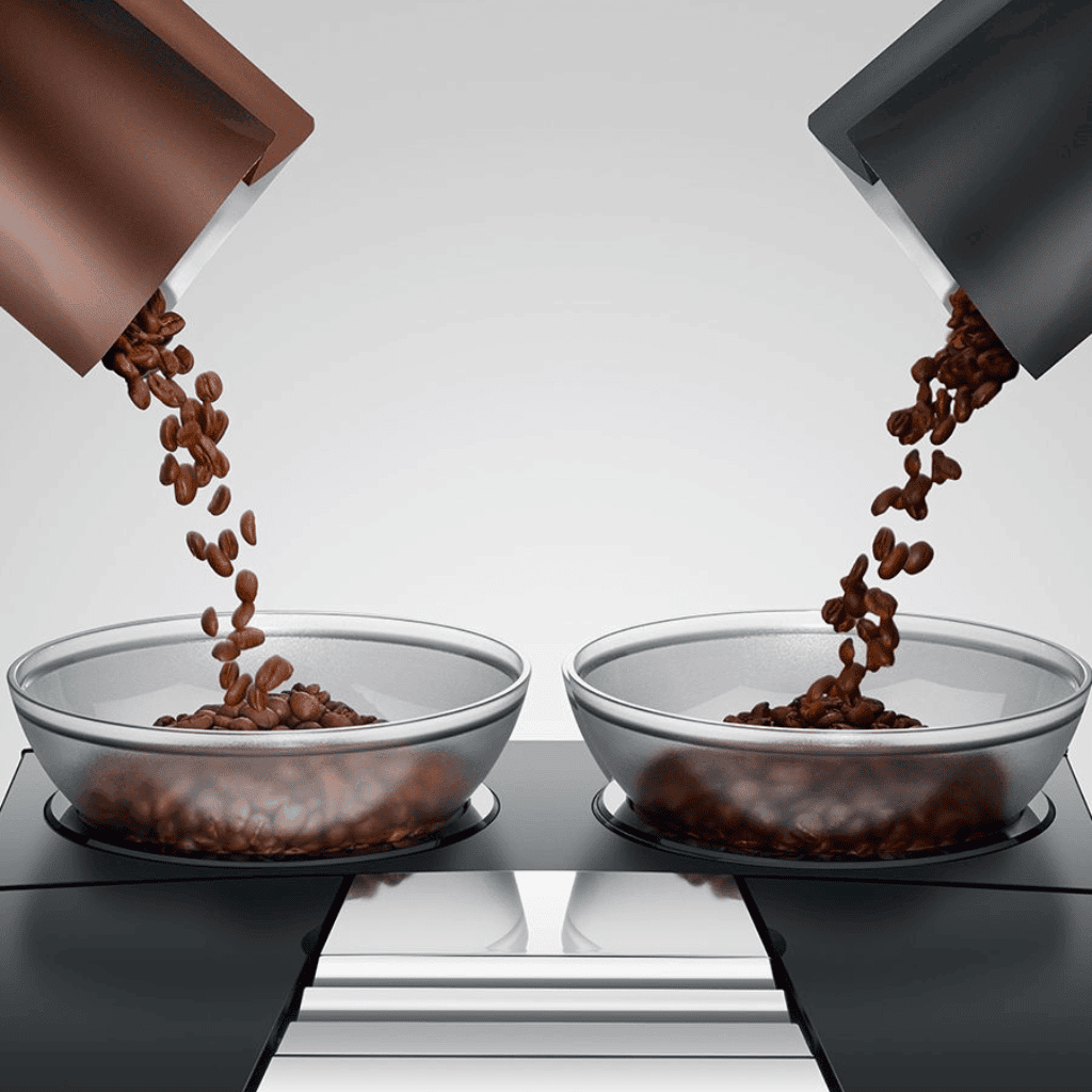 Dual Grinder System: Blend two bean types for custom flavor profiles.
