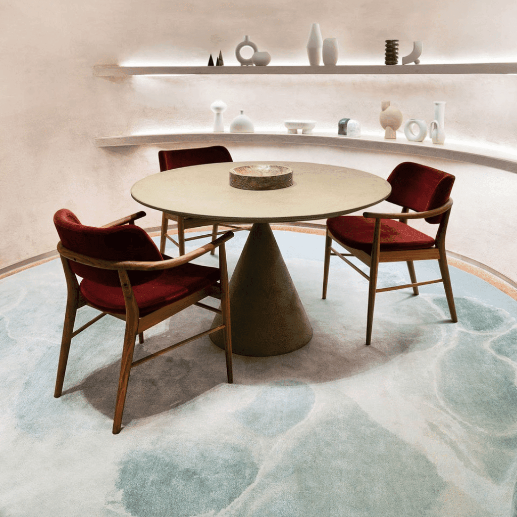 Square tables create symmetry. However, they require balanced proportions. In larger rooms, a square table may feel disconnected unless paired with bold lighting above.